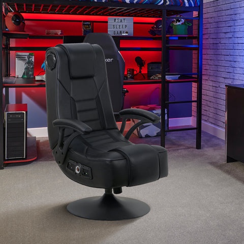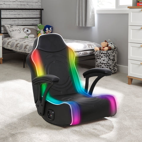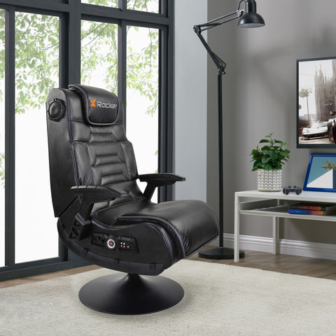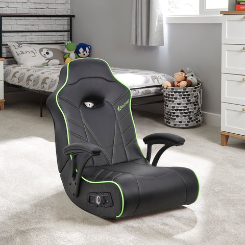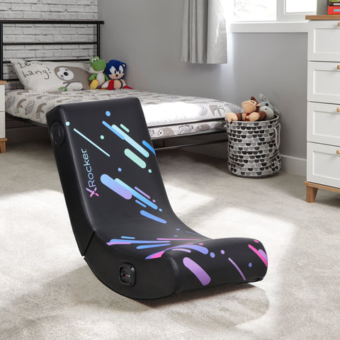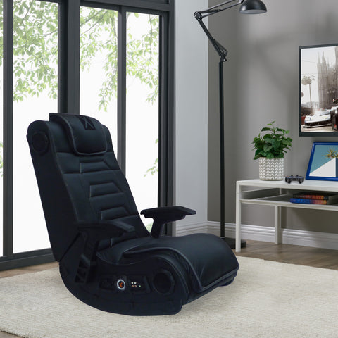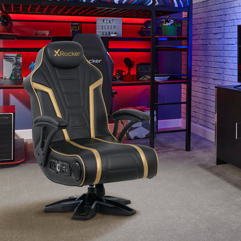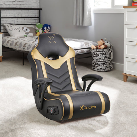 Puede que la mecedora de suelo de 24K no esté hecha de oro auténtico, pero seguro que es lujosa. ;) Con un sistema de sonido Bluetooth 2.1, apoyabrazos acolchados y una amplia superficie de asiento, esta mecedora de suelo es perfecta tanto para jugadores de consola jóvenes como adultos.