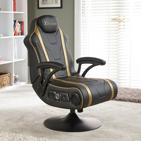 El pedestal Typhoon ofrece el audio de la más alta calidad de X Rocker, además de una comodidad y un diseño superiores. Con materiales de lujo y la mejor experiencia de audio disponible, el Typhoon es el regalo perfecto para los jugadores de consola serios o para los cinéfilos ávidos. Las múltiples opciones de conexión, que incluyen Bluetooth, conexión inalámbrica y por cable, facilitan la conexión a cualquier televisor, consola, tableta o teléfono.
